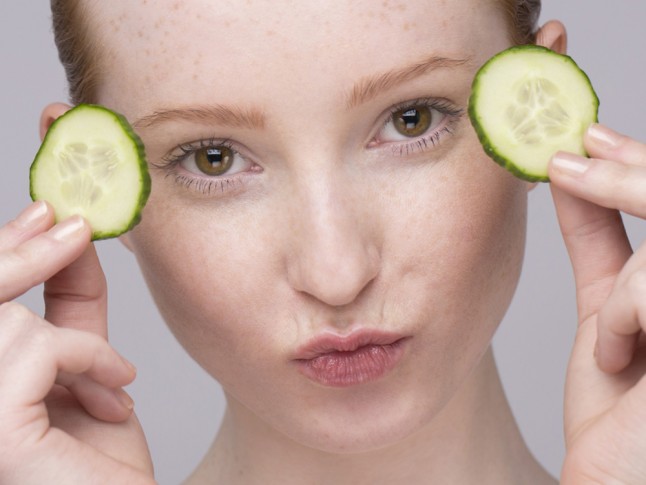 -Put on some cucumber slices underneath your eyes. The great thing about cucumbers, is that they are rich in moisture, & if you ever make yourself a cucumber mask (as in cover your face with cucumber slices) you will feel that the moisture from the cucumbers will get absorbed into your skin. If cucumbers can do that for your skin, you can imagine what they can do for your eyes? Don’t buy cucumbers often? Buy a small one, slice it up & put it in a small container & freeze them. When you feel like you need them again, you can take out the slices, rinse it off with warm water (so it’s not so icy on your face) & then lay them down on your eyes. Or go the natural route & use the whole cucumber as a mask!