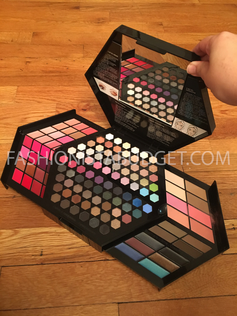 And I love this palette. Every time I open it I feel like a wide eyed kid who’s opening a big box of candy. And I love the fact that this is an all-in-one, with 80 different eye shadows, 32 lip glosses, 6 cream eyeliners, 4 blushes, 4 brow powders, 2 bronzers, & 2 highlighters! And I don’t have to worry about packing anything separately! If I’m bringing my makeup somewhere, bringing it with me on a trip, or even doing it at home, I don’t need to open compact, after tube, after compact. Which is convenient in particular, when I’m traveling or doing makeup in a rush.